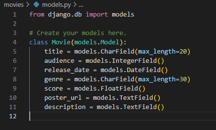 : Django가 기본적으로 ORM을 제공함에 따른 것으로 DB를 편하게 조작할 수 있도록 도움