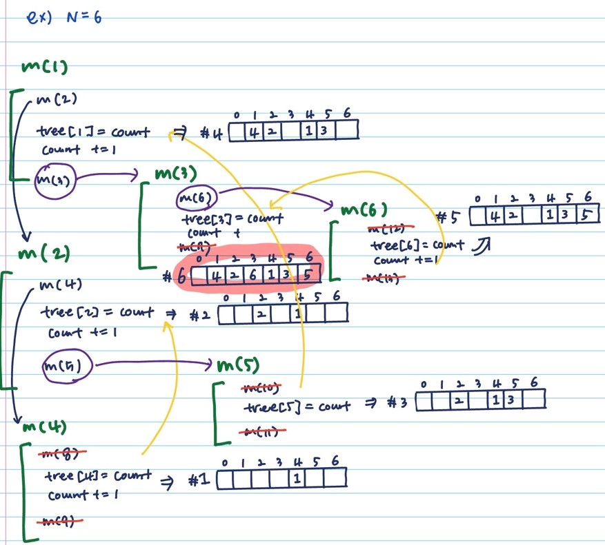 1부터 N까지의 자연수를 이진 탐색 트리에 저장하려고 한다.