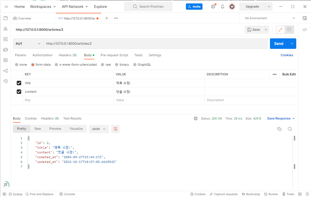 | articles/ | 전체 글 조회 | 글 작성 | 전체 글 수정 | 전체 글 삭제 |