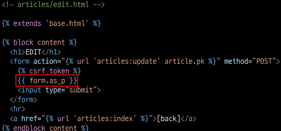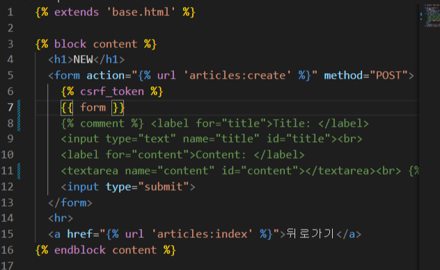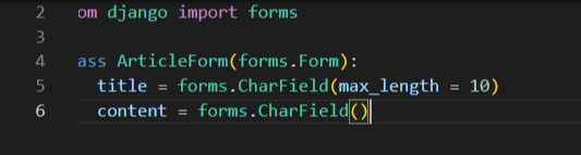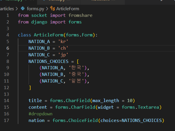 -> 앱 폴더에 forms.py를 생성 후 ArticleFrom class 선언
