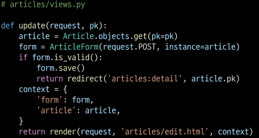ModelForm으로 인한 view 함수의 구조 변화 알아보기)