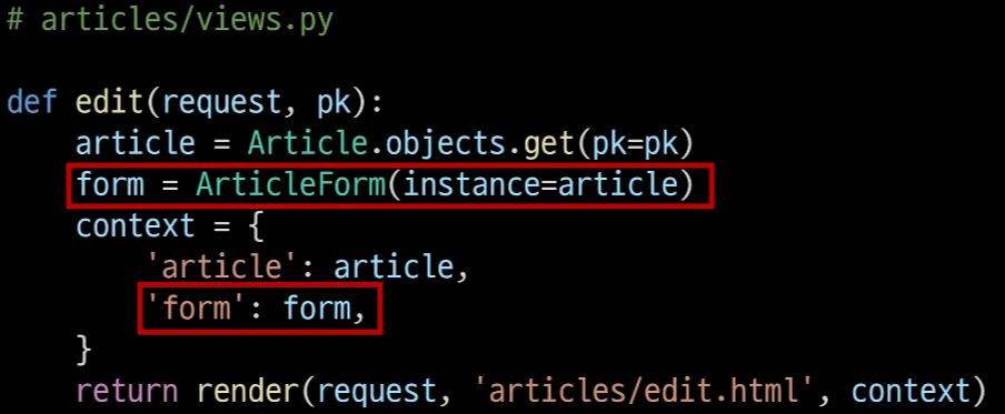 : ModelForm의 인자 instance는 수정 대상이 되는 객체를 지정