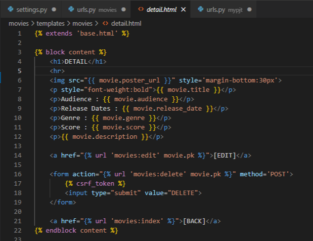 : Django가 기본적으로 ORM을 제공함에 따른 것으로 DB를 편하게 조작할 수 있도록 도움